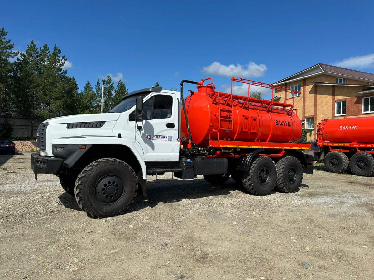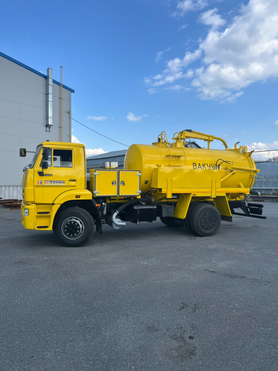 - Самосвальная система — гидравлика поднимает цистерну и открывает днище для быстрой выгрузки плотного осадка, значительно экономя время работы.