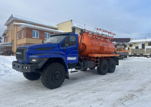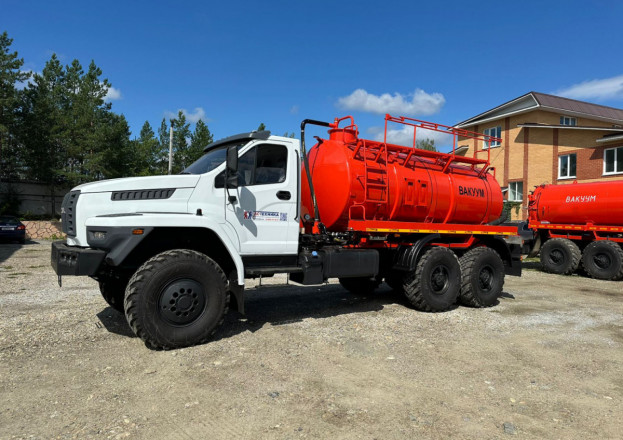 - Вакуумный насос — создаёт разрежение для всасывания жидкости (производительность 240–360 м³/ч). Глубина всасывания составляет до 4 метров.